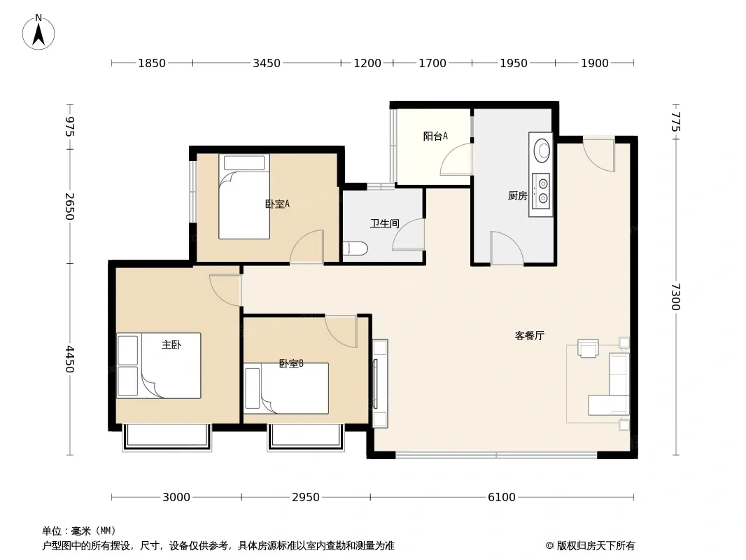 户型齐全,主打全明格局,户型方正三居