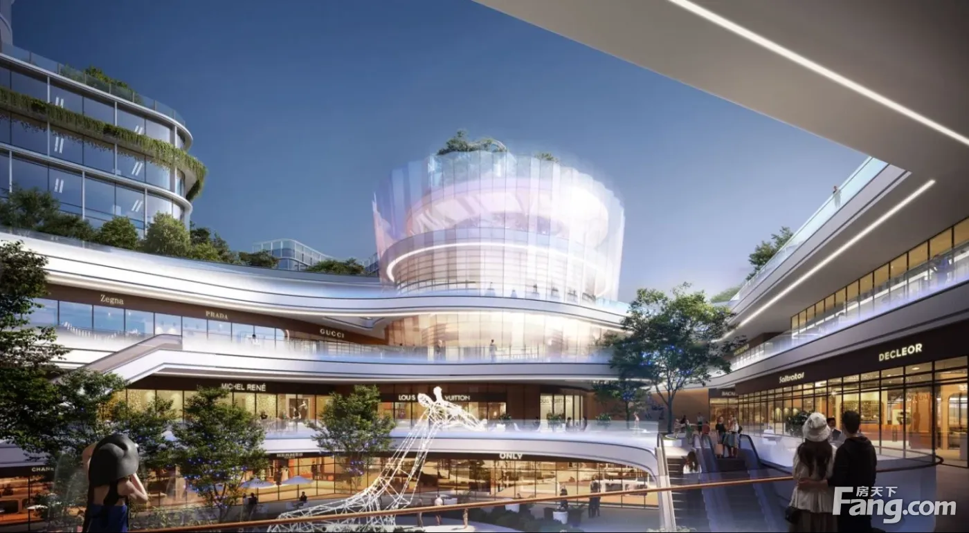 小区配套: 园林景观:一环两庭两轴的景观体系, 关键词:尊贵礼仪、双中庭、活力商业城市焕新 一环:园区内部以消防通道形成主要景观环道 两庭:建筑围合形态形成园区核心两大中庭,成为社区未来主要景观活动空间; 两轴:结合主次入口进深尺度打造归家仪式感。重点突出中庭空间、自然双园、儿童活动森林乐园、有氧环道四季慢跑等节点景观打造。 【蔡家中央活力商务区】 蔡家商业地标,五星级酒店铂尔曼入驻, 项目自带18万方商业体量,约2公里直线距离范围到达龙湖天街,双公园环绕,出则繁华,入则宁静;