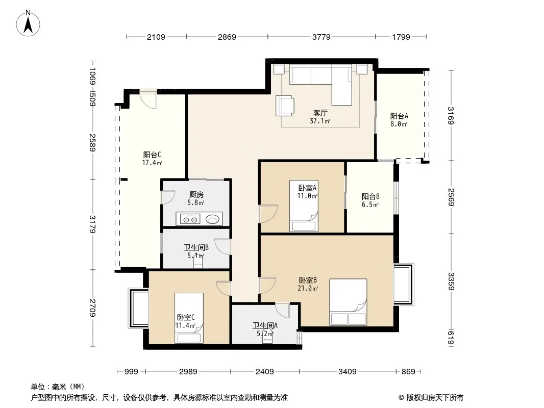 同景国际城I组团 3室2厅 东南