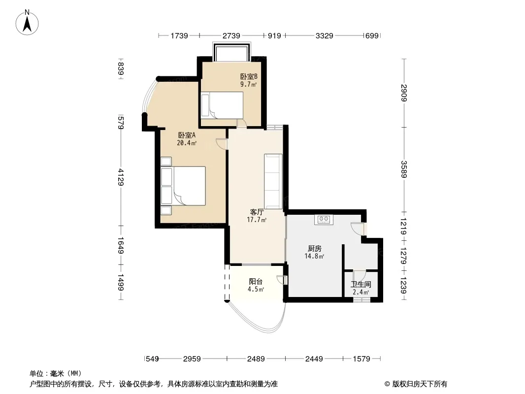 户型齐全,主打明厨,客厅朝南二居