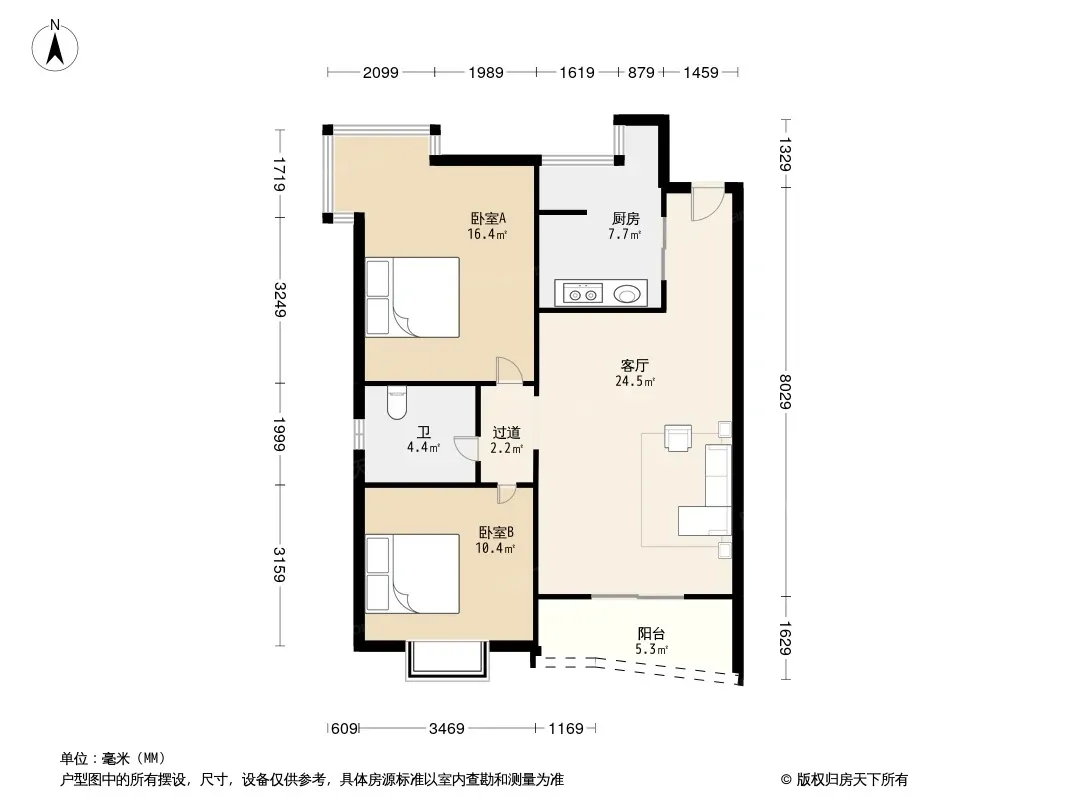 户型齐全,主打明卫,明厨,客厅朝南,全明格局,双卧朝南二居