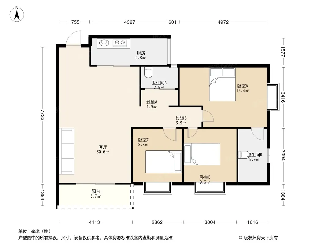 *获取完整户型报告,同时会有免费语音讲解服务