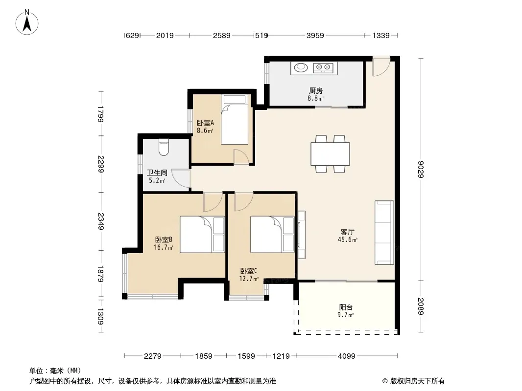 户型齐全,主打户型方正,双阳台二居