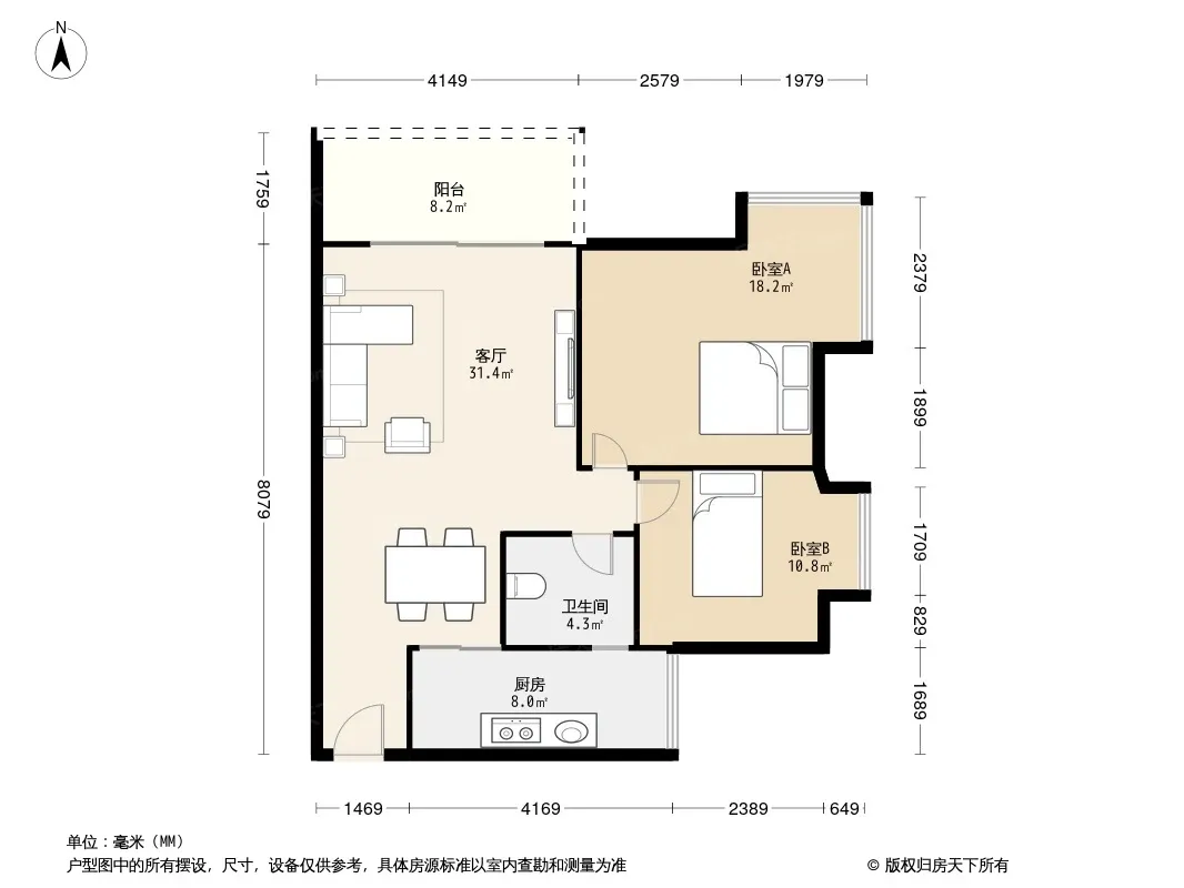 户型齐全,主打户型方正,双阳台二居