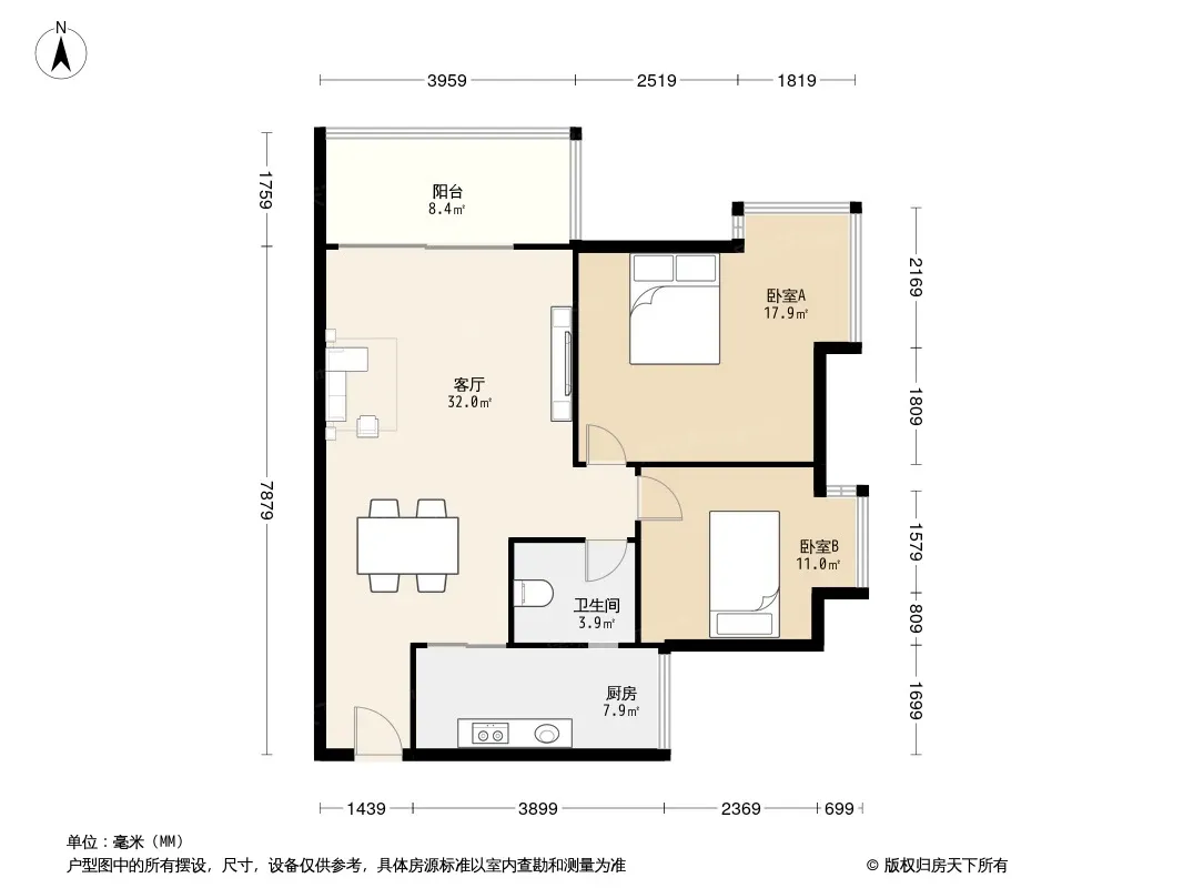 户型齐全,主打户型方正,双阳台二居