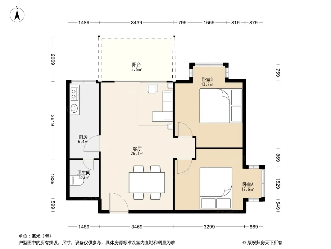 户型齐全,主打户型方正,明卫,明厨,客厅朝南,全明格局三居