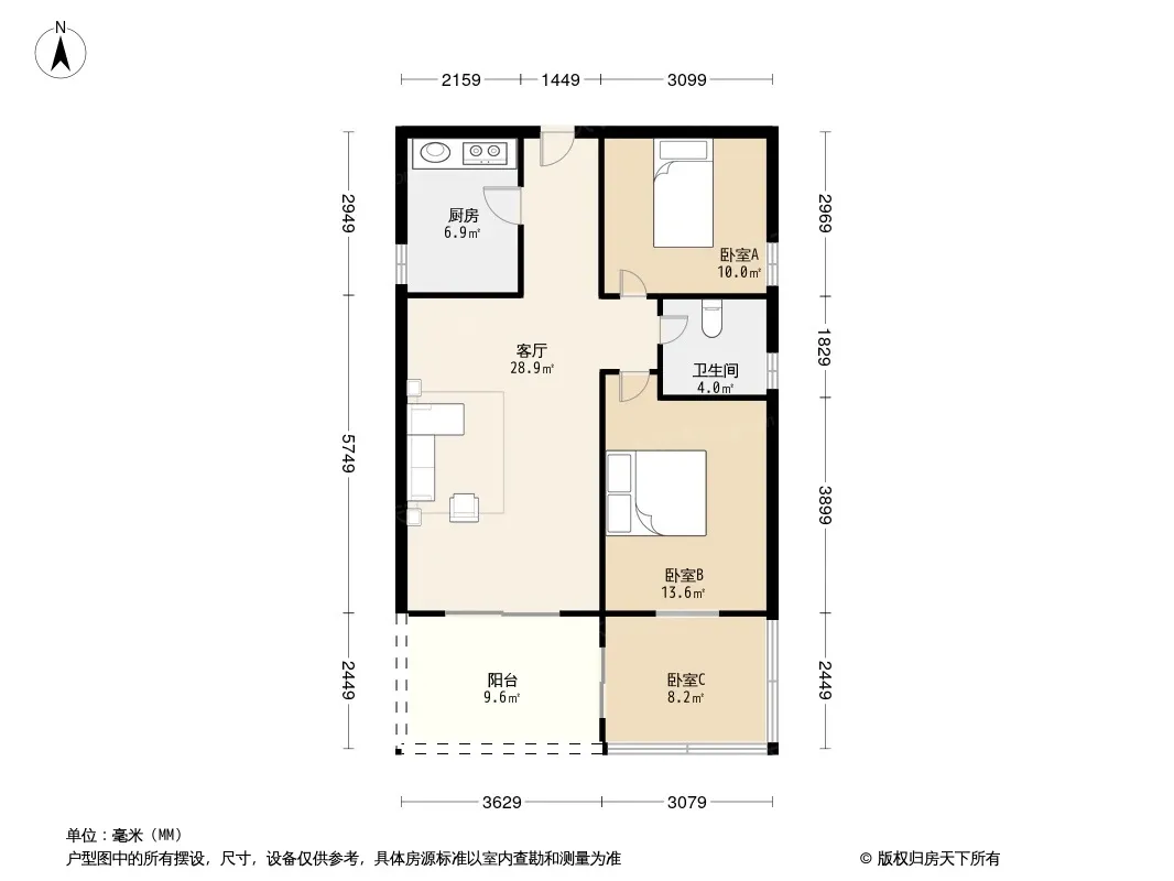 户型齐全,主打户型方正,明卫,明厨,客厅朝南,全明格局三居