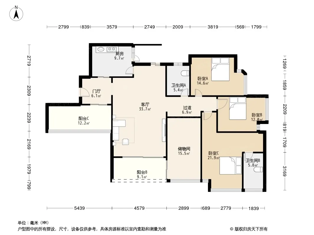 户型齐全,主打户型方正,明厨,明卫,双阳台三居
