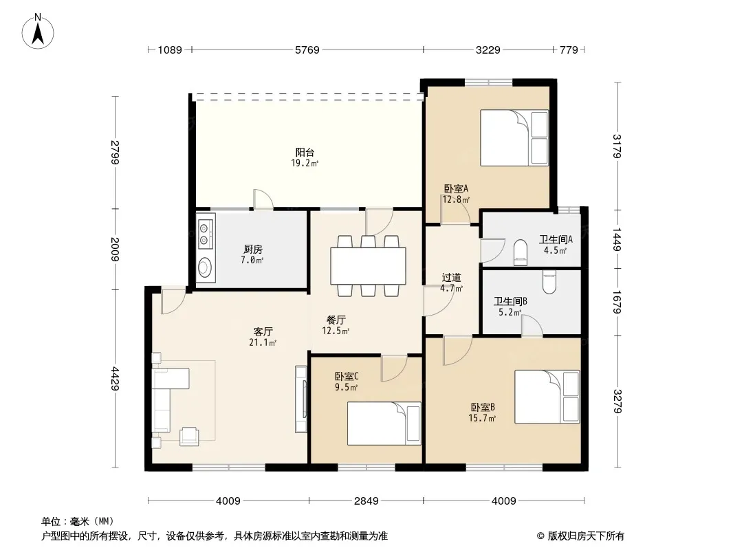 户型齐全,主打户型方正,明卫,独立衣帽间,主卧朝南三居