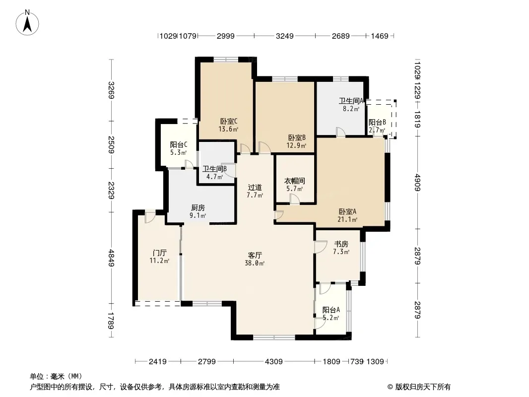 户型齐全,主打户型方正,明卫,独立衣帽间,主卧朝南三居