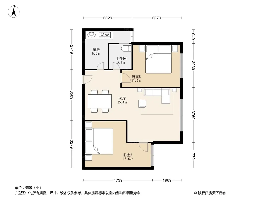 户型齐全,主打户型方正,明厨,客厅朝南二居