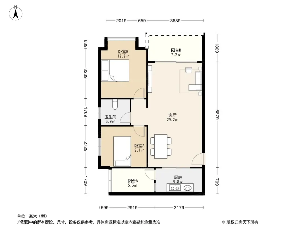 户型齐全,主打户型方正,明厨,客厅朝南二居