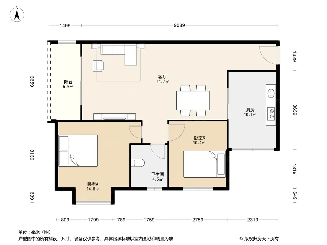 户型齐全,主打户型方正,明厨,客厅朝南二居