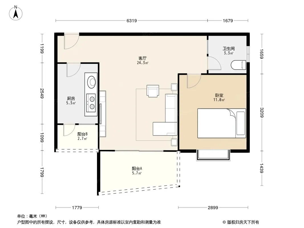户型齐全,主打客厅朝南二居