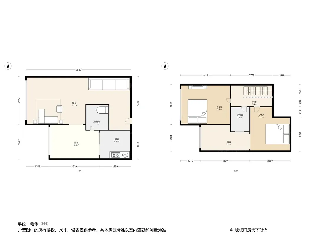 北滨路清水跃层两房,看中庭居家安静