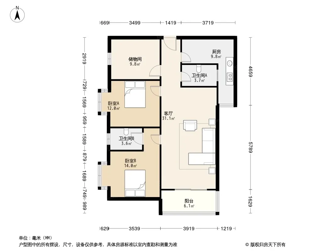 户型齐全,主打户型方正,明厨,明卫,客厅朝南,全明格局二居