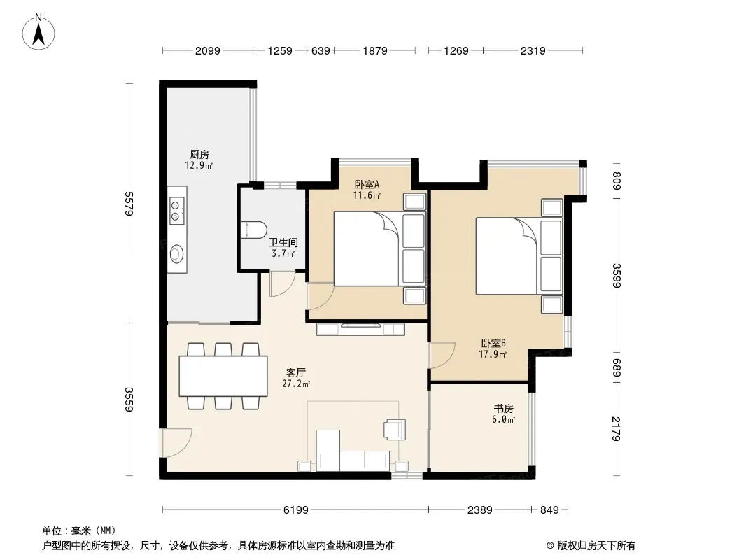 户型齐全,主打明卫,客厅朝南,主卧朝南三居