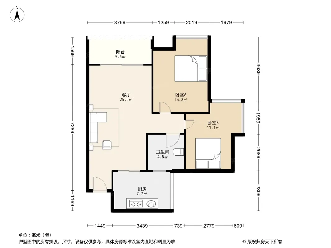 户型齐全,主打户型方正,双阳台,双卧朝南,主卧朝南二居
