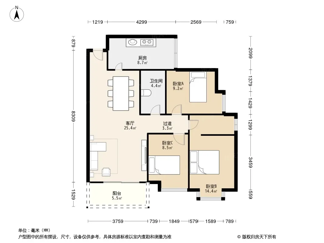 户型齐全,主打明厨三居