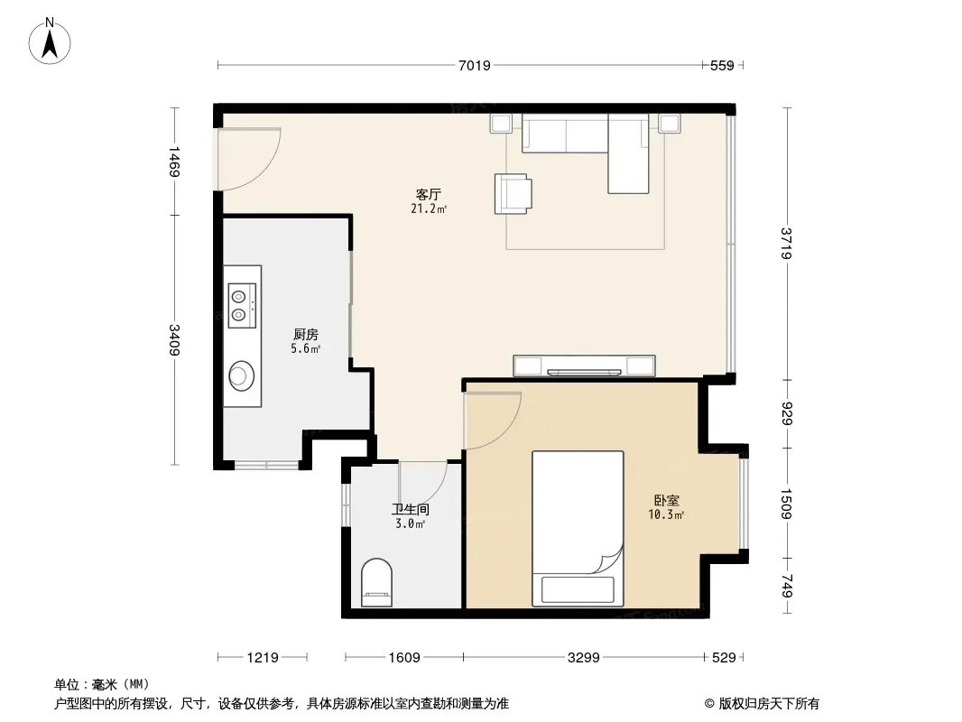 户型齐全,主打客厅朝南一居