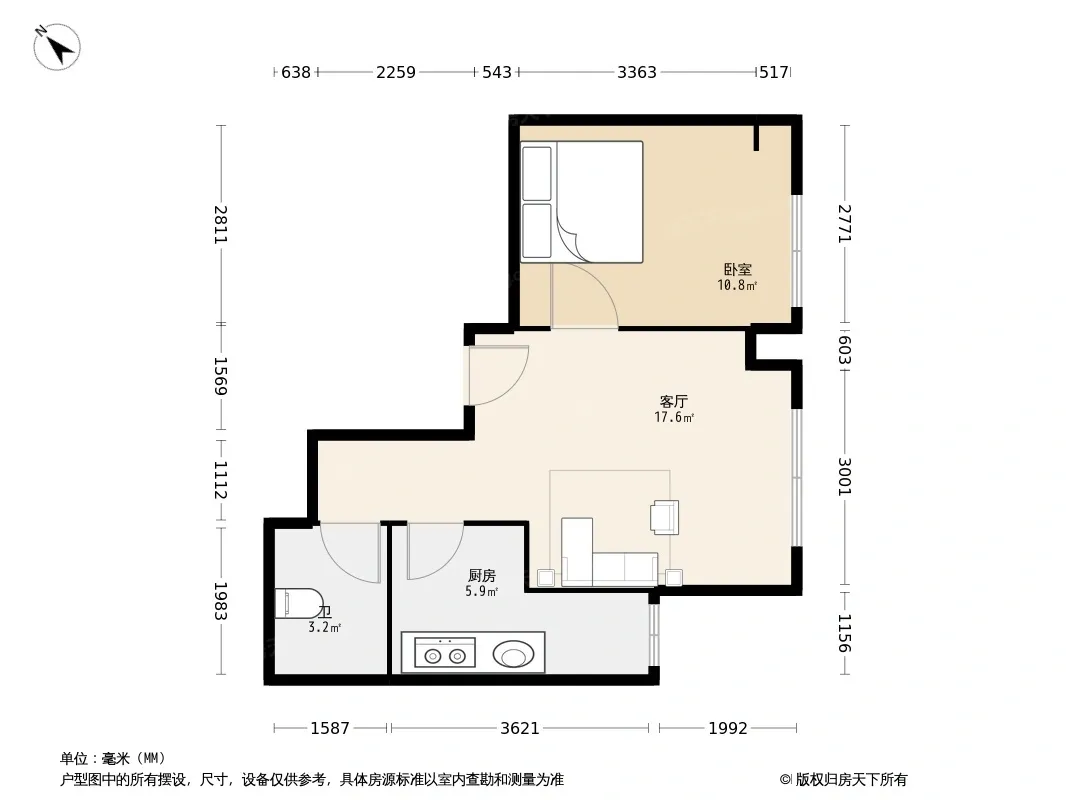 户型齐全,主打客厅朝南二居