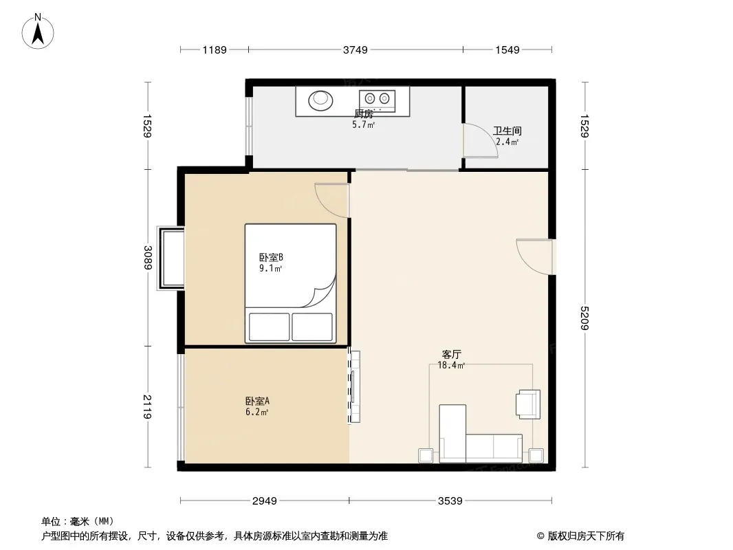 户型齐全,主打客厅朝南二居