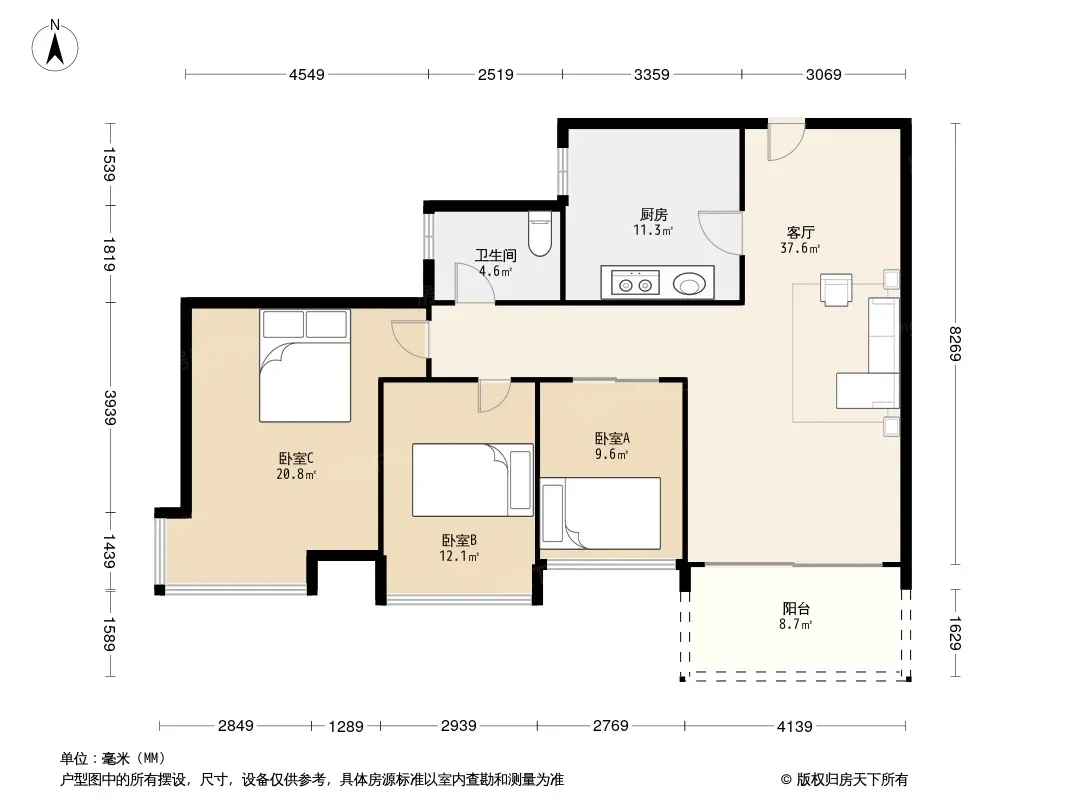 *获取完整户型报告,同时会有免费语音讲解服务