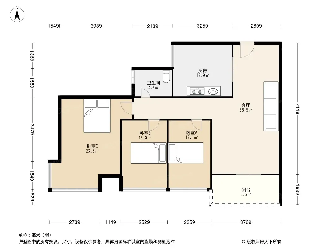 *获取完整户型报告,同时会有免费语音讲解服务