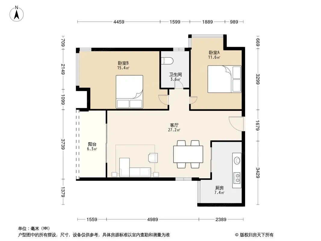 户型齐全,主打户型方正,明卫,客厅朝南二居