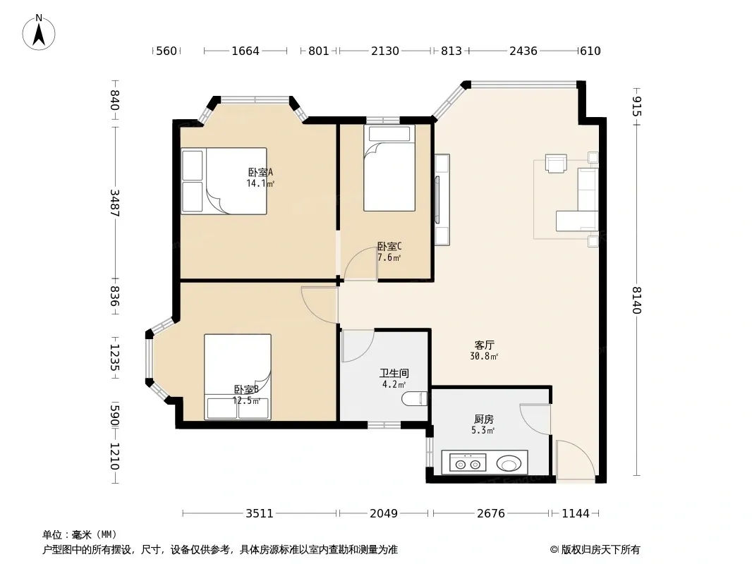 *获取完整户型报告,同时会有免费语音讲解服务
