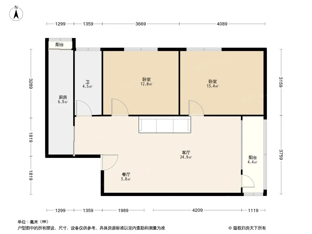 户型齐全,主打明厨,客厅朝南二居