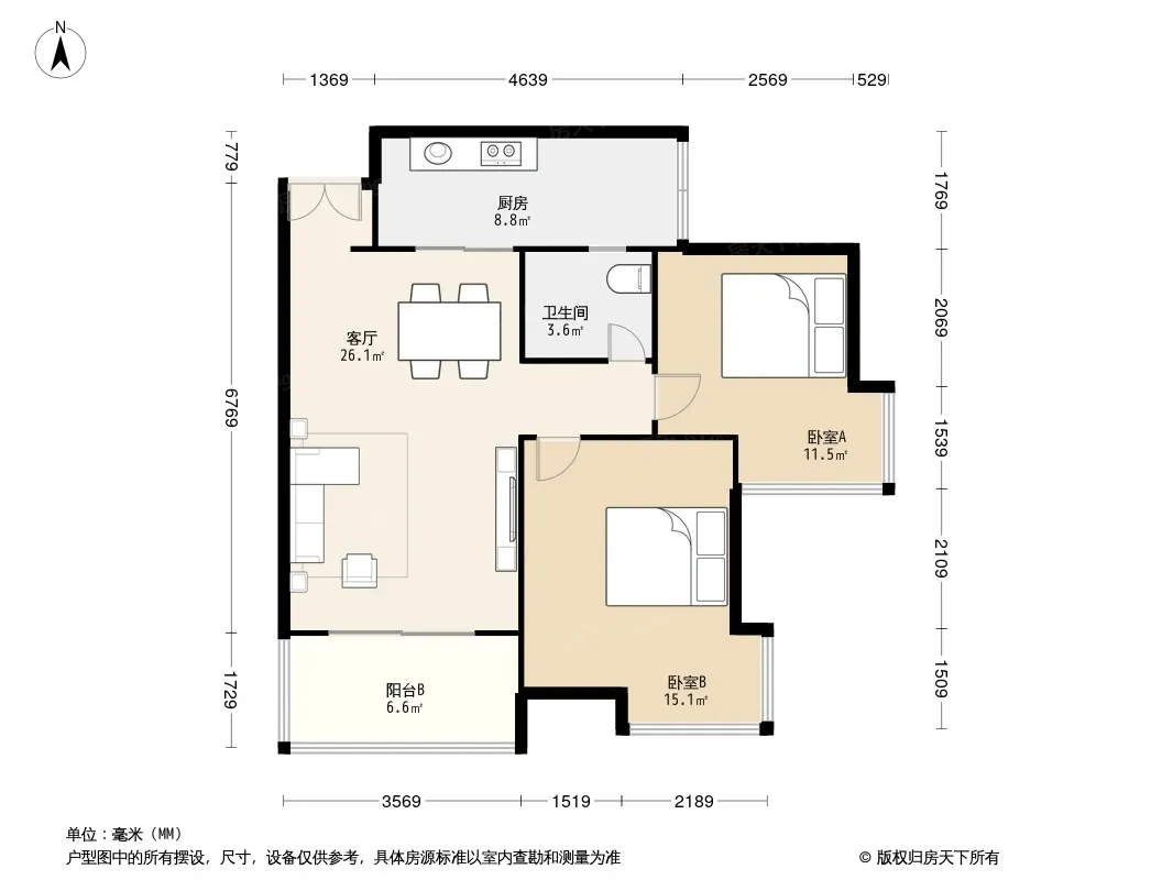 户型齐全,主打户型方正,客厅朝南二居