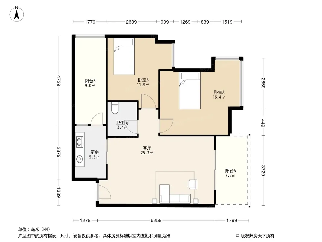 户型齐全,主打户型方正,客厅朝南二居