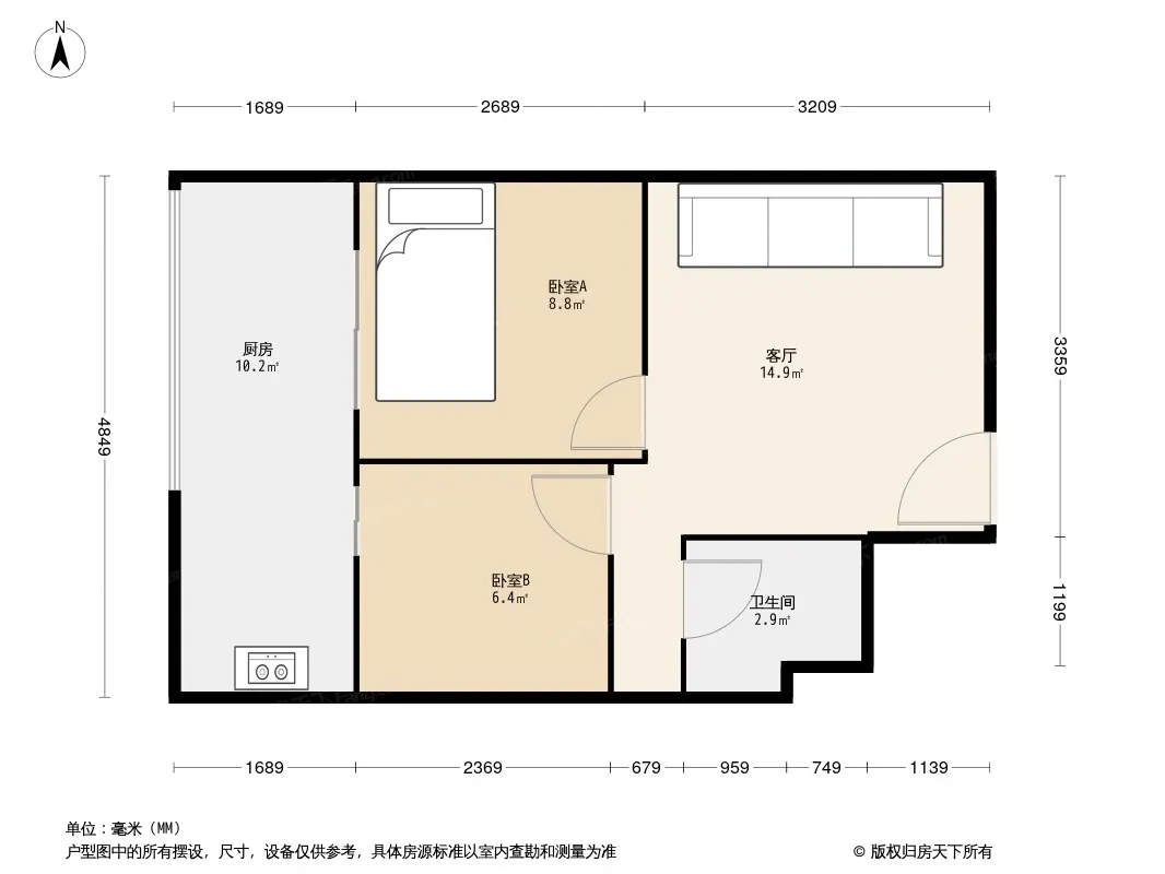 户型齐全,主打双卧朝南三居