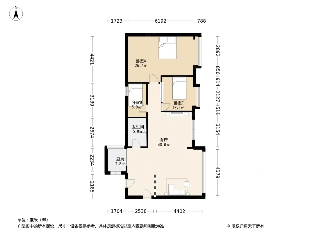 户型齐全,主打明卫,独立衣帽间,明厨三居