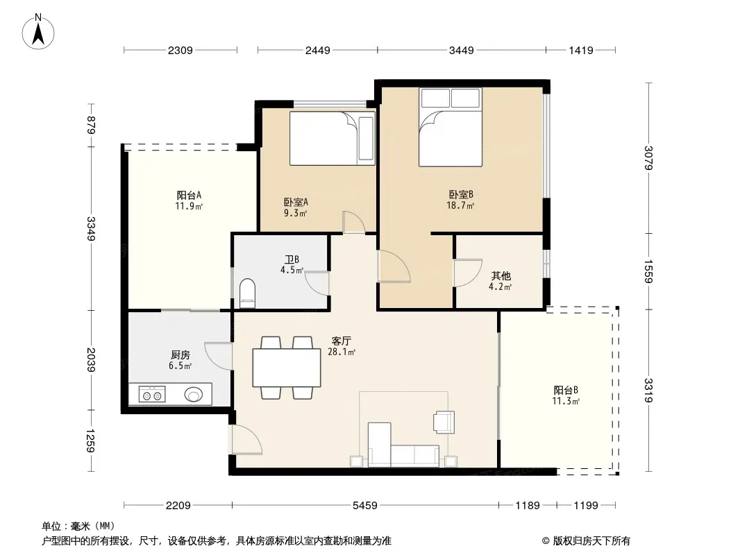 户型齐全,主打明卫,双阳台三居