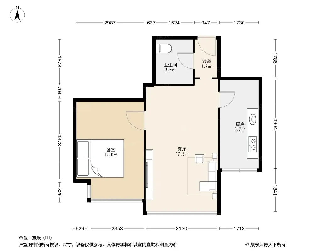 正能雅舍 1室1厅 南
