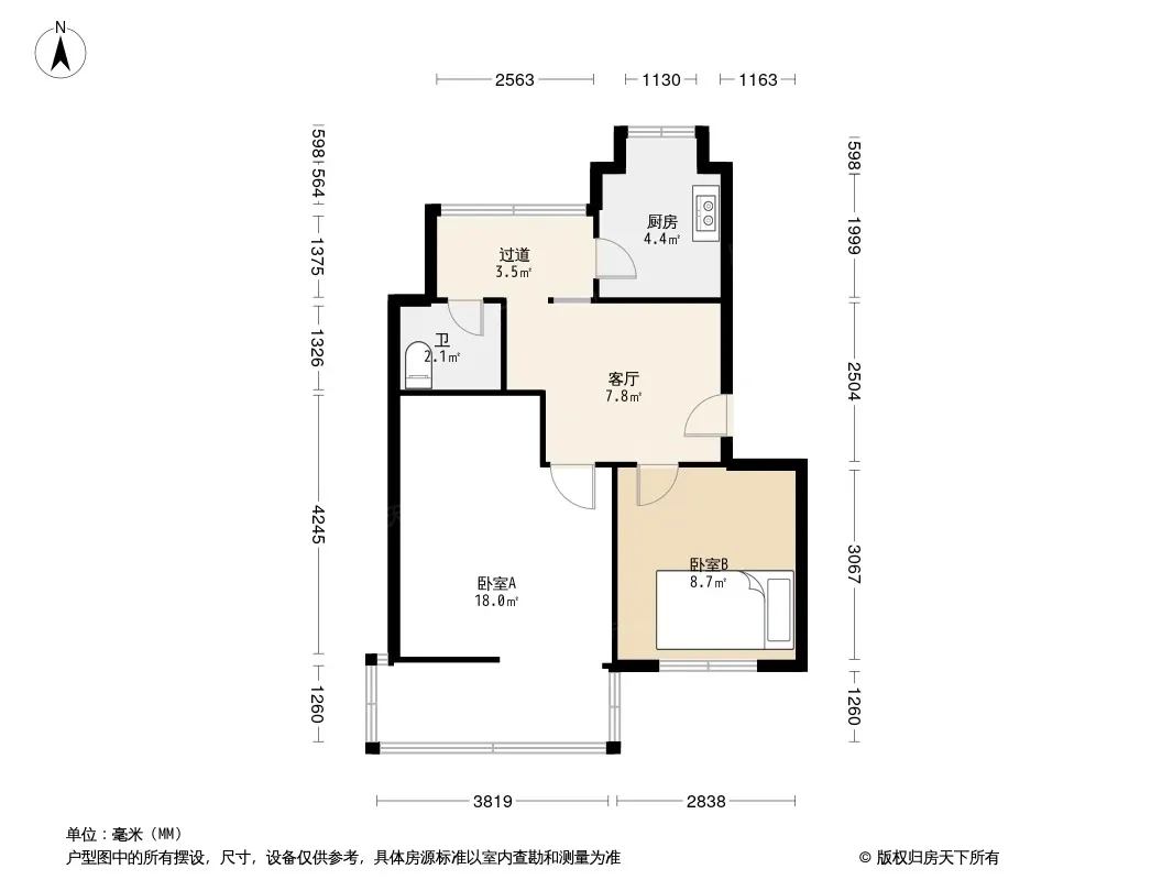 户型齐全,主打明厨,客厅朝南二居