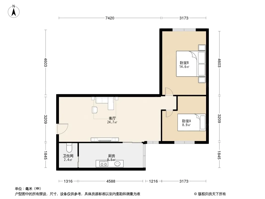户型齐全,主打明卫,明厨,客厅朝南,全明格局,主卧朝南二居