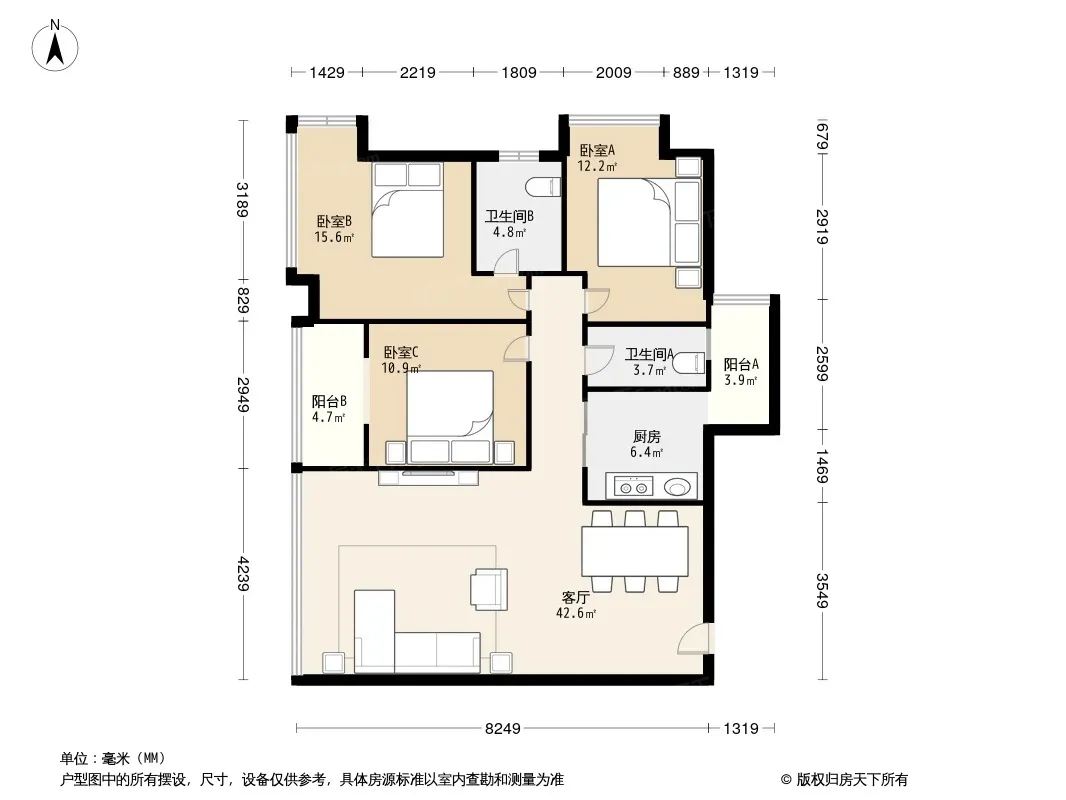 户型齐全,主打户型方正,明卫,主卧朝南三居