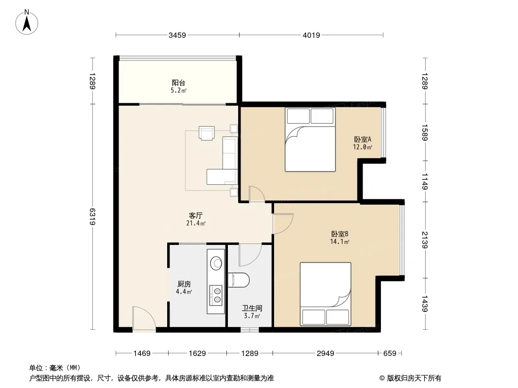 户型齐全,主打明厨,客厅朝南二居