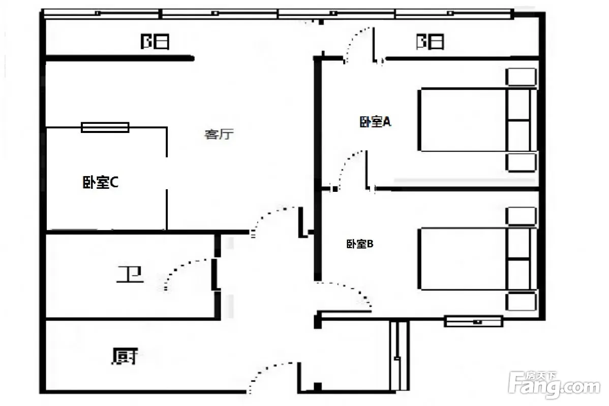 户型齐全,主打明卫,明厨,客厅朝南,主卧朝南三居