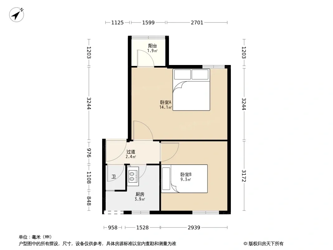 户型齐全,主打明卫,客厅朝南二居