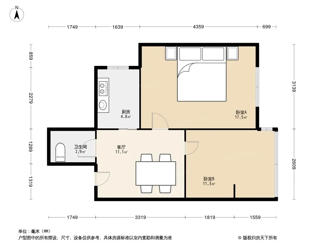 户型齐全,主打明厨,明卫,客厅朝南,全明格局二居