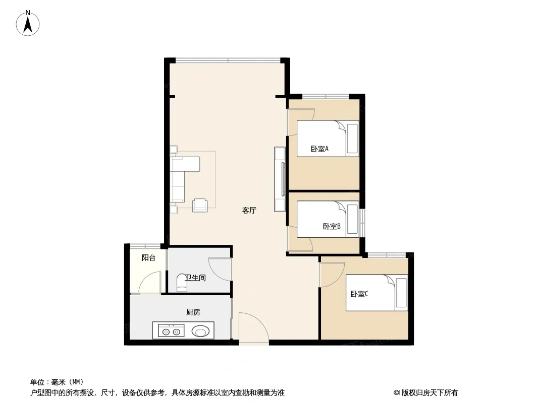 户型齐全,主打客厅朝南三居