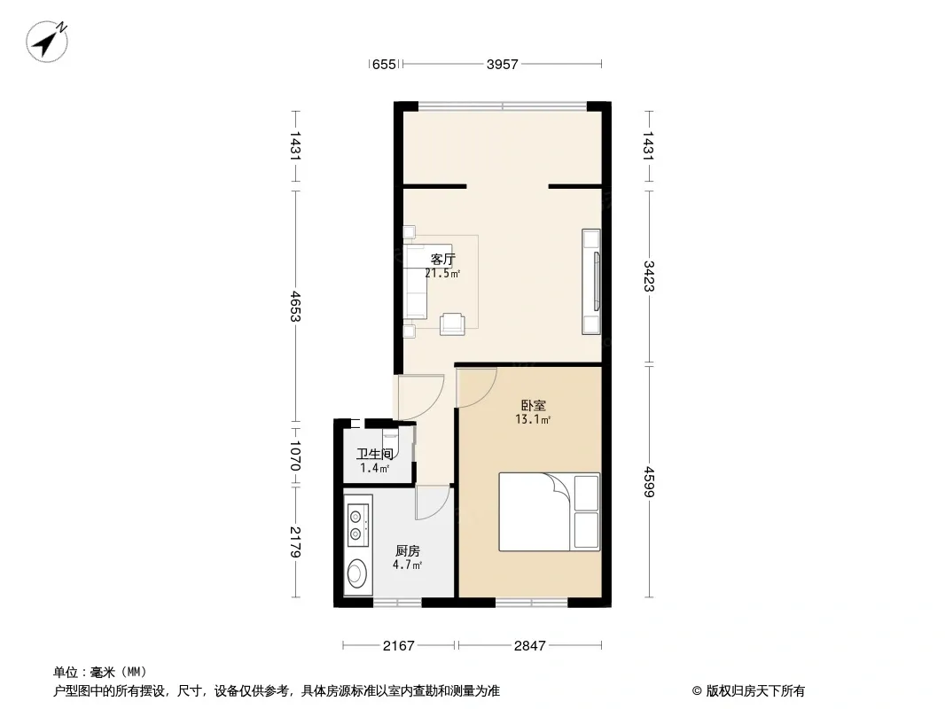 户型齐全,主打明厨,客厅朝南二居