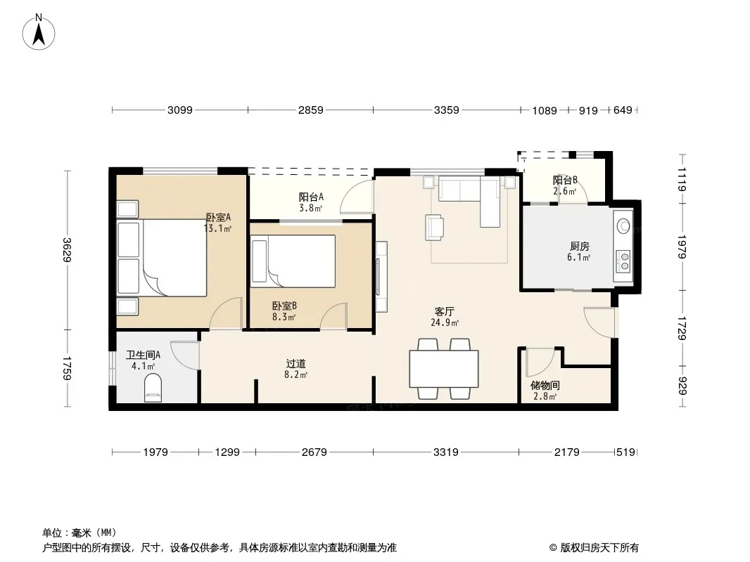 户型齐全,主打户型方正,明卫,客厅朝南,双阳台二居