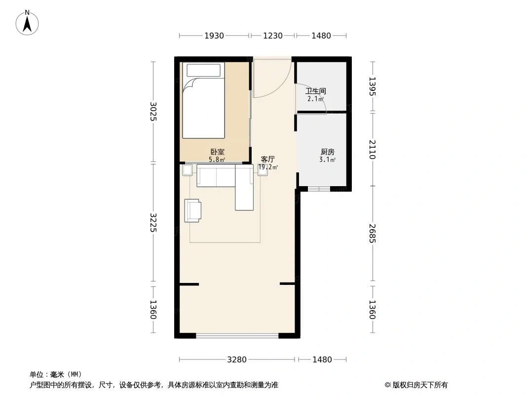 户型齐全,主打明厨,客厅朝南一居