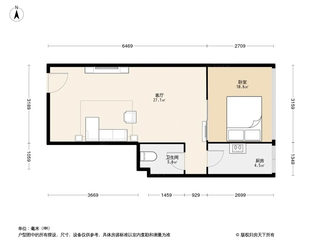 户型齐全,主打明厨,主卧朝南一居