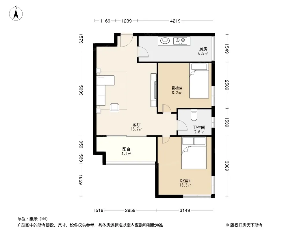 户型齐全,主打明厨,明卫,双卧朝南,主卧朝南二居